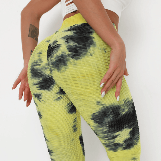 Tie-Dye Bubble Yoga Pants Slim Fit Buttocks Sports Fitness Leggings Women