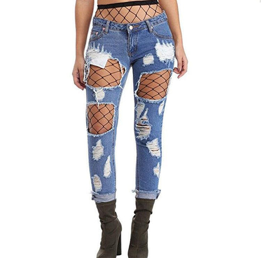 Fashion Trend Ripped Denim Trousers And Feet Pants