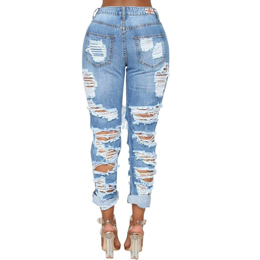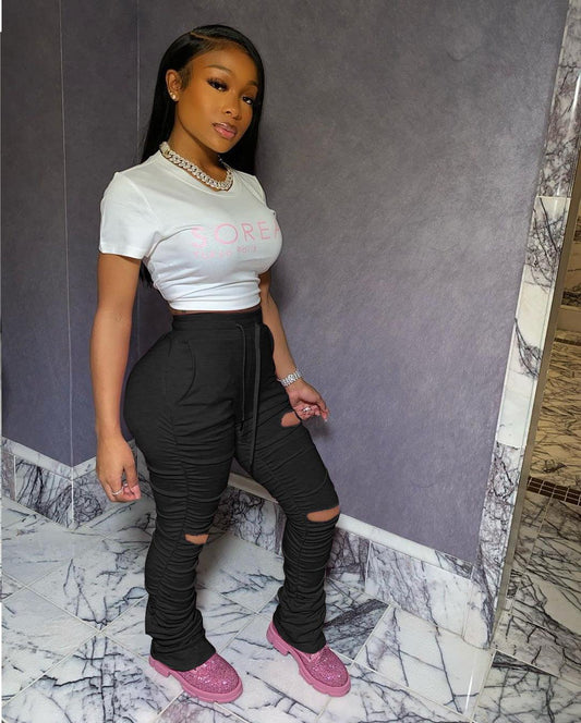 Women's Cotton Elastic Ripped Elastic Foot Pants