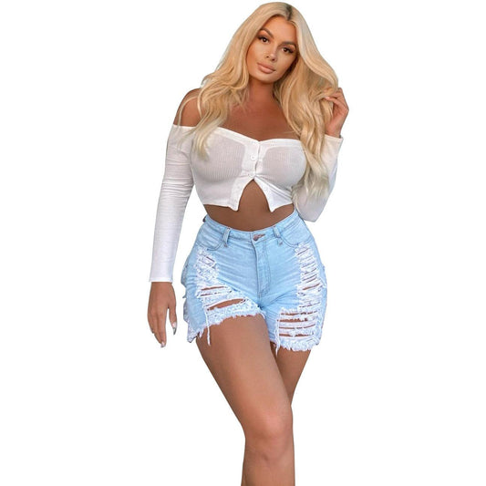 Ripped Fringed Brushed Denim Shorts Plus Size Women'S Casual Straight-Leg Pants