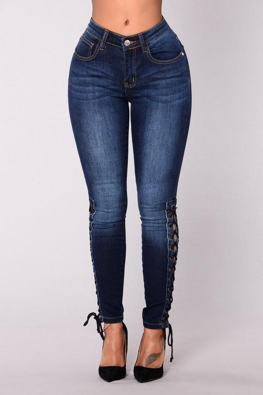 Stretch Elastic Skinny Bodycon Jeans Split Fitness Trousers Women Party Club Pants