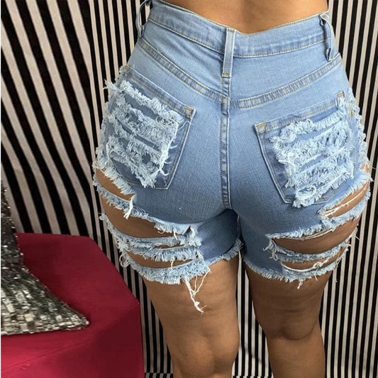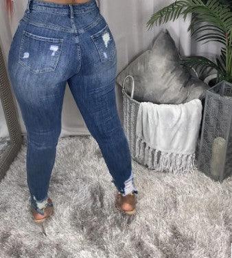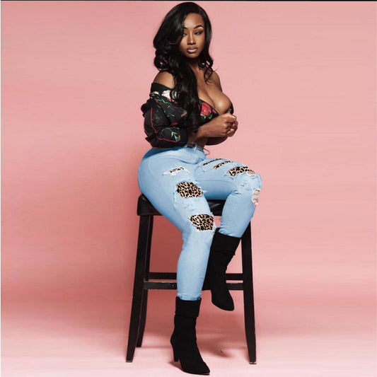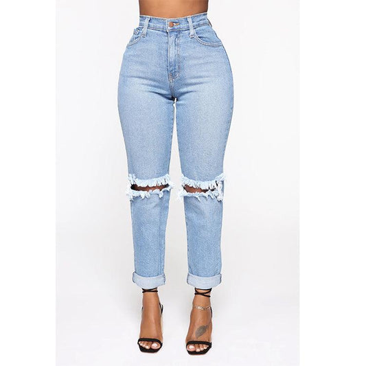 New Fashion Multi Hole Jeans High Waist Women's Pocket Trousers