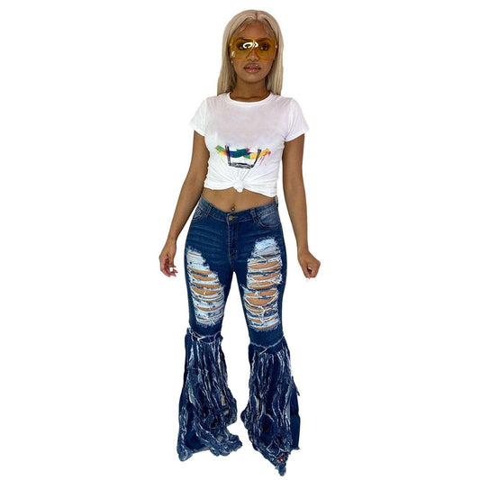 Trumpet Street Fashion Trend Ripped Plus Size Women's Jeans