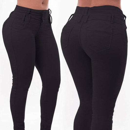 New Women's High-elastic Ripped Button Slim-fitting Mid-waist Jeans