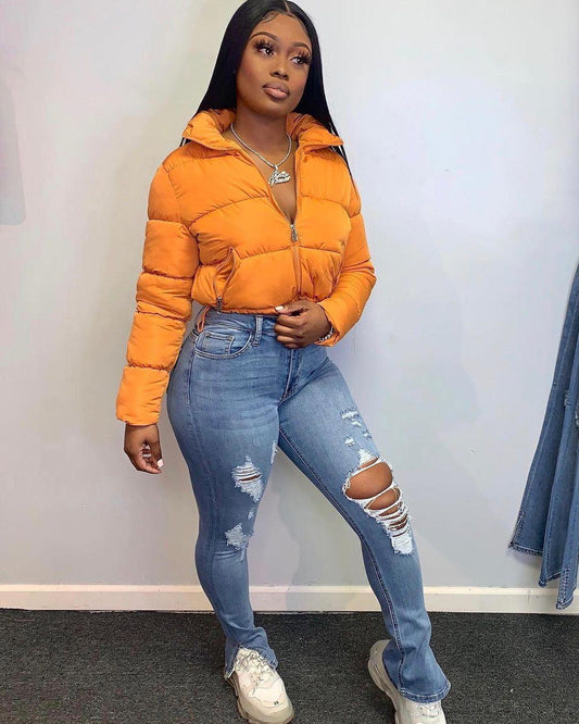Fashion Women's Slim-fit Buttocks Ripped Jeans