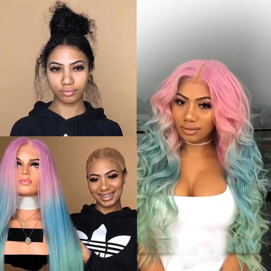 Mid-Section Dyed Wig, Gradient Long Straight Hair Synthetic Wig