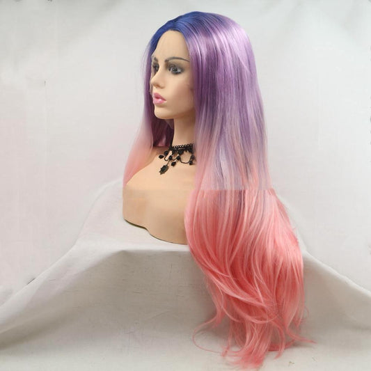 Front Lace Half-Hand Hook Gradient Color Long Curly Synthetic Wig
