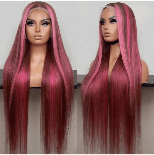T-förmige Farbverlaufs-Highlight-Perücke aus zwei Strängen Echthaar