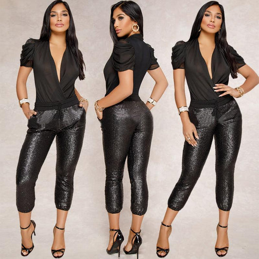 Pantalon crayon décontracté européen et américain à paillettes et perles pour femmes