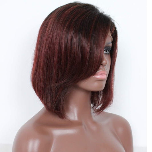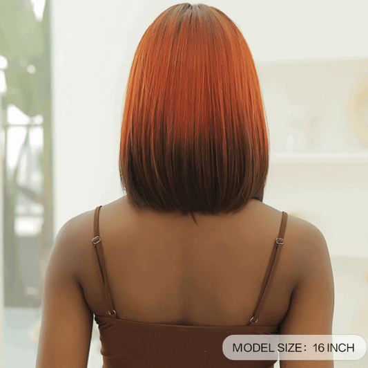 Perruque Synthétique Cheveux Courts Raides Dégradé Brun Rouge Frange